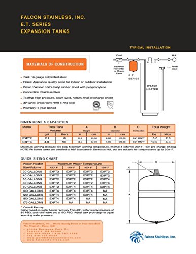 Falcon 2.1 G Potable Water Expansion Tank for 50-Gallon Water Heaters 5 Year Warranty