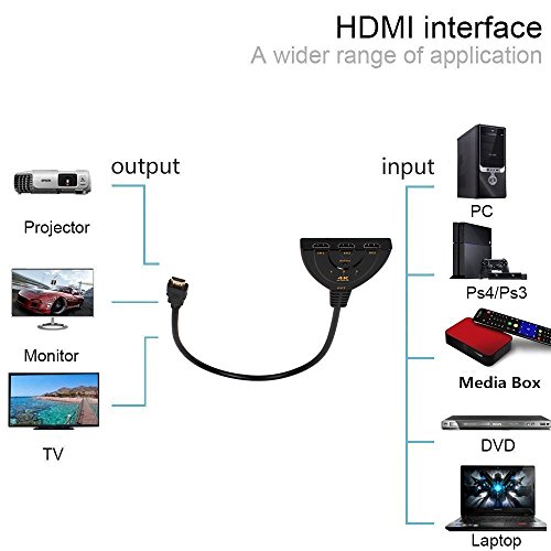 ---VEKEY is a company focus on HDMI solutions.We dedicated ourselves to provides high quality HDMI devices and accessories to users. ---More convenient,more practical,more productive and more cost-efficient are our goal,which determines us require extreme attention to details. Features: ●Three HDMI Inputs switch to one HDMI Output. ●Support HDMI1.3,2kx4k 12-bit,3D. ● Support video input:0.5-1.0 volts p-p,DDC input:5 volts p-p (TTL) . ● Support video output: HDMI1.3b HDCP1.0/1.1 ● Support video format: VGA:640x480,800x600,1024x768,1920x1200 ● DTV/HDTV:480i/576i/480p/576p/720p/1080i/1080P ●LED Status Light shows clearly the working state. ●In 4K HDMI UHD resolution, HDMI Input and Output distance can be up to 25m using the AWG26 standard HDMI Cable. ●Easy to use.