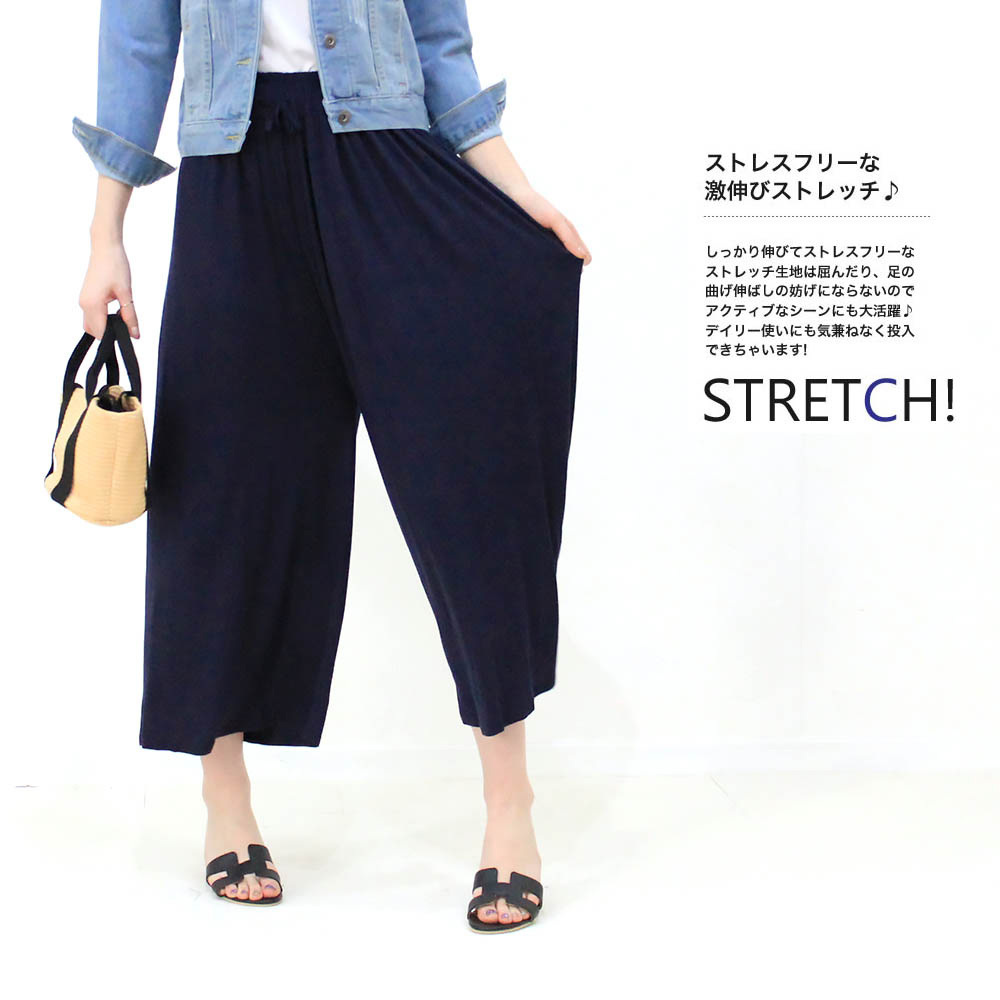 肌に気持ちいいストレッチの効いた、しっとりモチモチ生地。くるんと回転するとフワッと広がるパンツで、お姫様気分になれちゃいます