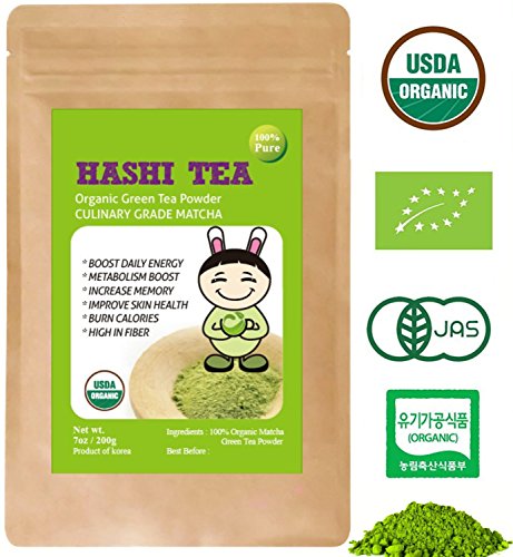 -. Binding : Misc. -. Brand : HASHI TEA -. EAN : 0888429138616 -. Feature : BOOST DAILY ENERGY - Lift your vitality and concentration with the slow release natural energy from Organic Matcha / BURN CARORIES - Support your weight loss goals with an all-natural way to increase metabolism of your body / HEALTHY SUPERFOOD - rich in antioxidants, helps boost metabolism, great source of natural energy and mental clarity / CULINARY MATCHA - Great for adding into cakes, smoothies, tea drinks and other healthy recipes / 100% Organic Korea Origin Powered Matcha Green Tea -. IsAdultProduct : 0 -. Label : soadawon -. Manufacturer : soadawon -. ProductGroup : Grocery -. ProductTypeName : GROCERY -. Publisher : soadawon -. Size : 7 Ounces -. Studio : soadawon -. Title : Organic Matcha Green Tea Powder 7oz by hashi tea - Culinary Grade for Mixing into Lattes Smoothies baking & Cooking -100% USDA Certified Organic -Product of Korea -. UPC : 888429138616