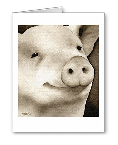 -. Feature : Pig artwork by watercolor artist DJ Rogers. / Note card size is 4.25 x 5.5 inches / Matching white envelopes included. / Note cards are blank inside for your personal message. / Suitable for framing.