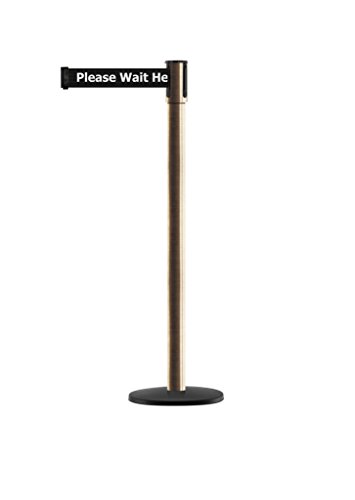 Tensabarrier - 890B-33-2S-2S-MAX-NO-BCX-C - satin brass post, 2" wide, 13' length blk Please Wait Here belt