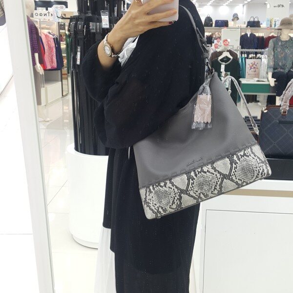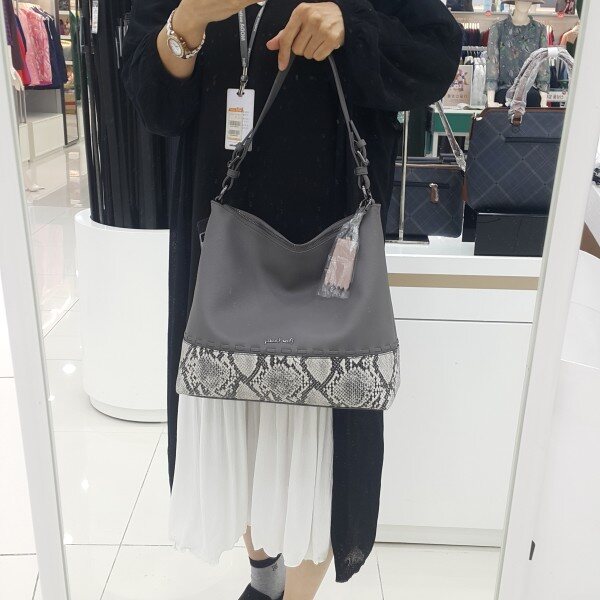 부드러운 오플엠보와 뱀피무늬가 조화로운 호보백 부드러운 인디핑크의 장식과 파이톤 포인트 (뱀피무늬 윗부분 점선모양 가죽 띠) 가볍고 부드러우며 넉넉한 싸이즈의 캐쥬얼 정장 다양한 착장에 매칭이 편안한 차별화 되는 호보백!