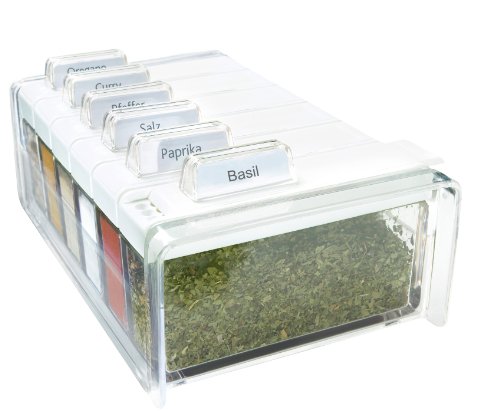 -. Feature : Six spice containers / Organize your spices / Easy to access / Black or white / Spice containers come empty