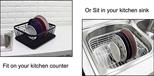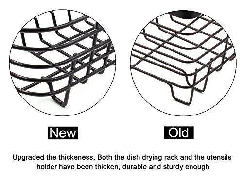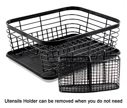 ESYLIFE Kitchen Dish Drainer Drying Rack with Drip Tray and Full-Mesh Silverware Storage Basket, Black