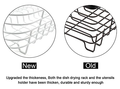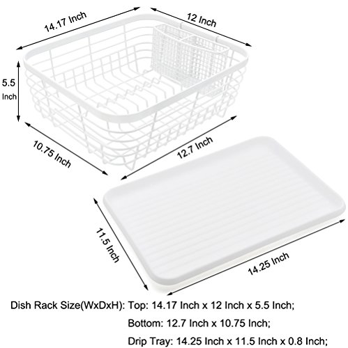 ESYLIFE Kitchen Dish Drainer Drying Rack with Drip Tray and Full-Mesh Silverware Storage Basket, White