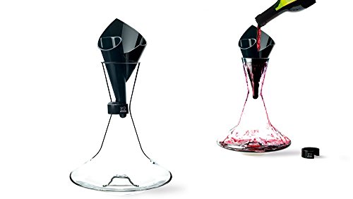 -. Feature : Use the wider, outer decanting funnel chamber to maximize contact between young red wines and air / The broad shoulders and wide belly facilitate greater contact between the wine and the air; enhancing breathing / The sharper angles of the carafe encourage oxygenation when wine is swirled / The pronounced punt allows more light into the carafe to reveal color better / The narrow contact surface prevents excessive thermal transfer, protecting wine that has been resting at its proper temperature