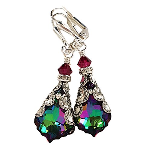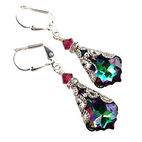 -. Feature : HisJewelsCreations - Swarovski Elements Baroque Electra Coating Finish Length: Approx. 1 1/2" Antique Silver Filigree Casting Silverplate Leverback / Beautiful Swarovski Electra Coated Crystal Baroque Pendant earrings accented with Swarovski Crystal Bicone Beads. The brilliant Bicone Bead stands for the utmost brilliance, intense sparkle and fascinating light effects. / For Matching Necklace please see: Swarovski Elements Electra Baroque Crystal Silver Filigree Pendant Jewelry Necklace