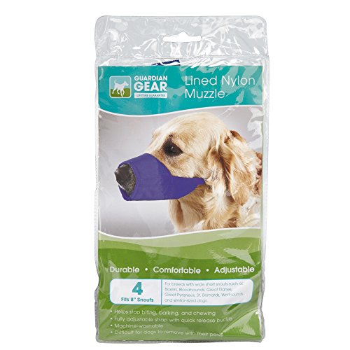 Studio : PetEdge Dealer Services Publisher : PetEdge Dealer Services Binding : Misc. Product Description Guardian Gear lined fashion muzzle is for safety when working with biting, barking and chewing dogs. Each muzzle is crafted in strong nylon fabric and lined with a foam-padded comfort strip. Features finished inner seams for extra support, fully adjustable strap and quick-release buckle. Muzzle stays securely in place, but it's a snap for people to remove and replace. 0 size muzzle fits 4-1/2-inch snout size. Available in blue color. Muzzles are the choice of top handlers, trainers and other professionals. Measures 7-1/2-inch length by 4-1/2-inch width by 1/2-inch height. 0