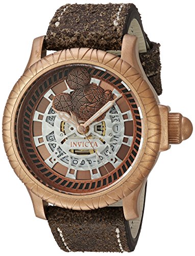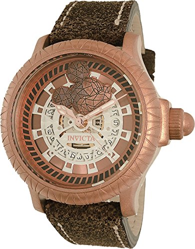 Studio : Invicta Publisher : Invicta Binding : Watch Product Description Invicta 22741 Disney Limited Edition men's watch features a 48mm wide and 17mm thick rose gold ion plated solid stainless steel case with a fixed bezel and textured push-pull crown. Invicta 22741 is powered by a reliable Swiss Ronda 715 quartz movement. This stylish watch also features a textured Mickey mouse engraved rose gold tone and white skeleton dial with white accents rose gold tone luminous hands and index hour markers along with the date display function, scratch resistant flame fusion crystal and water resistant to 100 meters. Invicta 22741 is equipped with a 24mm wide white stitched genuine brown leather strap with a buckle clasp. Invicta 22741 men's Disney Limited Edition rose gold white dial brown leather strap watch is brand new and comes in an original Invicta gift box and is backed by a 5 year limited warranty. 0