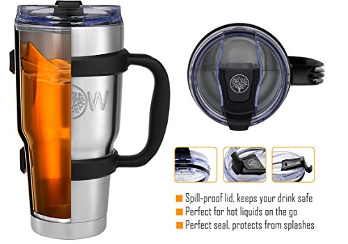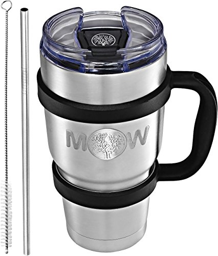 Do you hate when our favorite beverage loses its frosty (or piping hot) before we can fully enjoy it? We have you covered. The Premium Tumbler Kit handcrafted from 18/8 stainless steel and double-wall vacuum insulation keeps the ice a lot longer than any other tumblers beeing designed for maximum ice retention that also works excellent for hot beverages. Benefits of the 3 in 1 Tumbler SWEAT-FREE the MW Tumbler made of premium stainless steel features double-wall vacuum insulated , your drinks are safe. SPLASH-PROOF crystal clear slider closure lid comes with a black silicone o-ring around the base, which helps cover the cup tightly, your shirt is safe. HAND-FREE the highly durable handle will prevent holding your tumbler with both hands EASY GRIP stronger handle will prevent dropping and dent your 30oz travel mug, your Tumbler is safe. When you want a great tumbler for traveling, work and everyday adventure choose Mixologist World Stainless Steel Vacuum Insulated MUG.