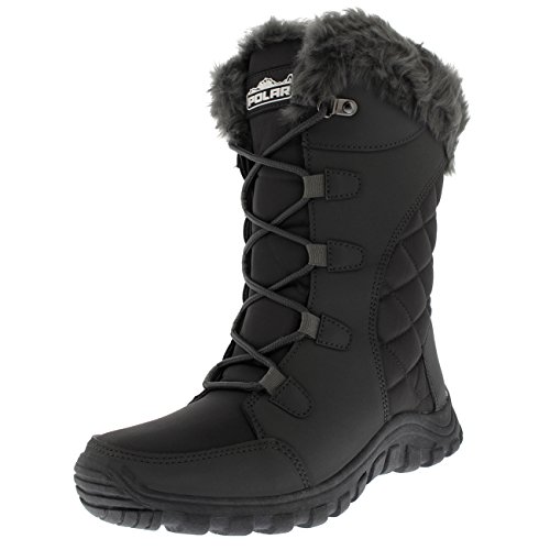-. Binding : Apparel -. Brand : Polar Products -. Department : womens -. Feature : Short quilted lace up boots, 3 eyelet design / Fully lined interior / Calendered rubber sole unit / Waterproof construction / Available in a palette of fashionable shades -. ProductGroup : Shoes -. ProductTypeName : SHOES -. Title : Womens Quilted Lace Up Black Outdoor Snow Rain Duck Boot