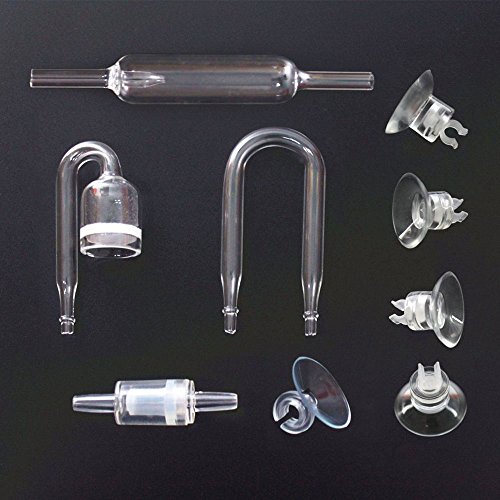 Asayu Fish Tank Aquarium CO2 Regulator ,U Shape Aquarium CO2 Diffuser Check Glass Tube Suction Cup( 2 style) , and Glass Bubble Container