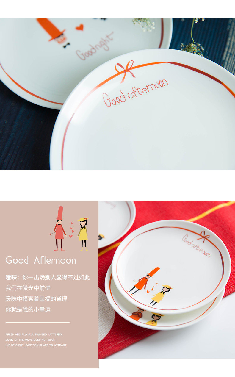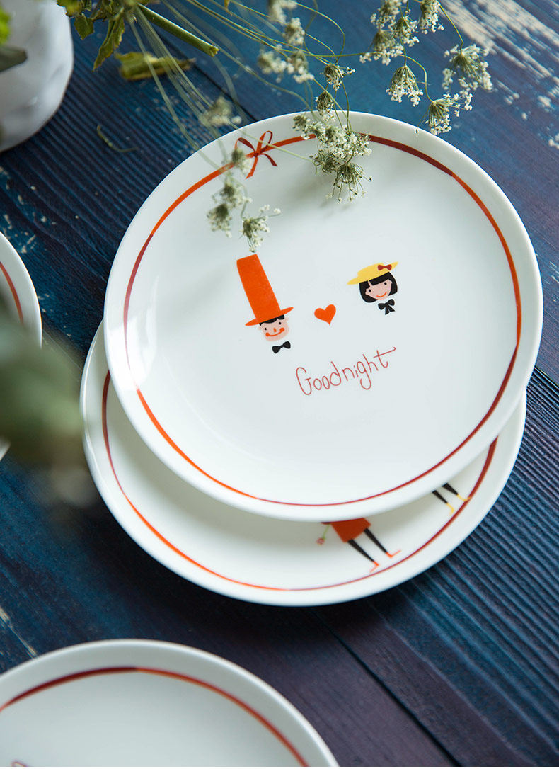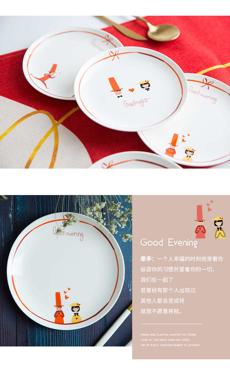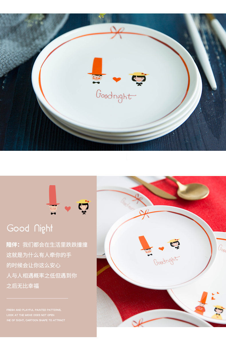 卡通结婚餐具创意6寸小盘子骨碟吐骨头盘碟陶瓷家用菜碟子