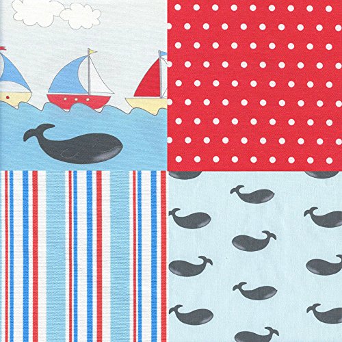 Designer 100% Cotton Quilting Fabric Fat Quarter Bundle - Sailing Boats & Whales - Designed & Printed in the UK