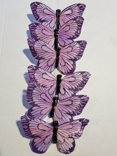 6 Large 6" Lavender Butterflies With Metal Clip Underneath for Attaching