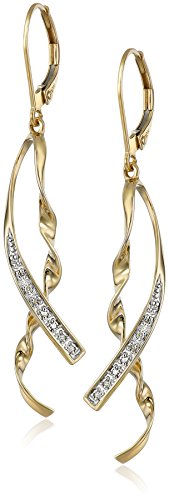 -. Title : 10k Yellow Gold Ribbon Diamond-Accent Earrings
