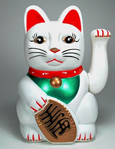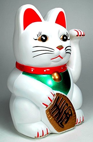 Monkey King WHITE Feng Shui Lucky Cats Lucky Beckoning Waving Wealth Cat Maneki Neko 5" Tall
