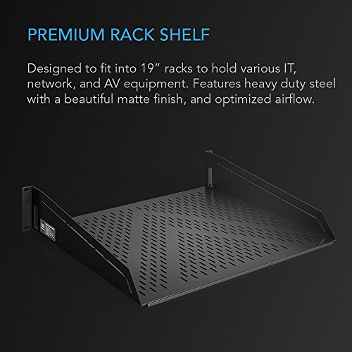 AC Infinity Vented Cantilever 2U Universal Rack Shelf, for 19” equipment racks. Heavy-Duty 2.4mm Cold Rolled Steel, 100lbs Capacity.