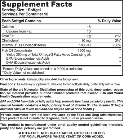 Nature's Blend Omega-3 Fish Oil 1200 mg and Vitamin D3 1000 IU 90 Softgels