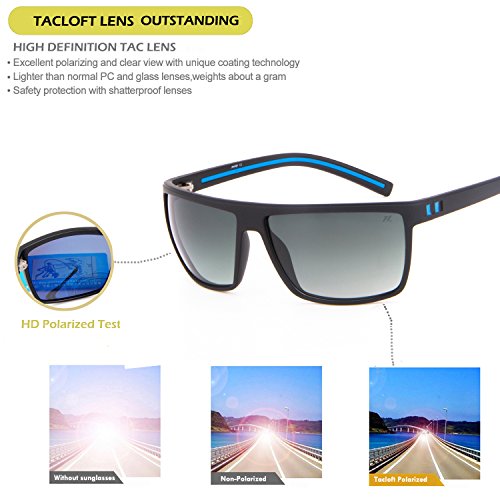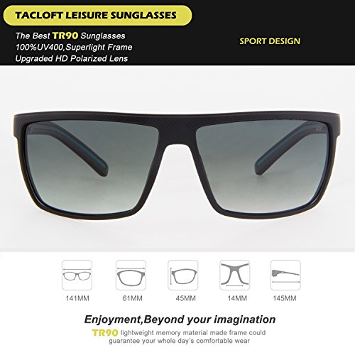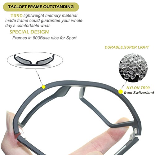 -. Feature : HD TAC polarized lens reduce glare reflected off of roads, bodies of water, snow, and other horizontal surfaces. Restore true color, eliminate reflected light and scattered light and protect eyes perfectly / Superlight TR90 Frame Design: ideal of usage for everyday; impact protection, scratch resistant of unbreakable sunglasses / UV400 PROTECTION- Lenses block 100% Harmful UVA & UVB Rays. UV 400 indicates an eye protection item that has been optimized to prevent eye exposure to both UVA and UVB radiation / Perfect for outdoors: cycling bicycle, driving, riding a motorcycle, running, fishing, racing, skiing, climbing, trekking etc / 30 DAY MONEY BACK GUARANTEE; 1 Year Breakage Warranty on frame & lens