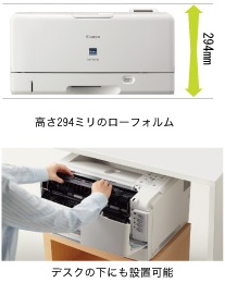 高さ294mmのローフォルム設計を採用。トナーカートリッジの交換も前面からのアクセスのみで行えるため、デスクトップはもちろんラックやデスク下にも設置可能です。