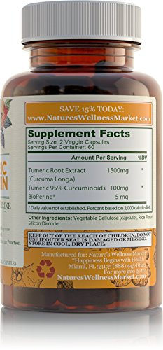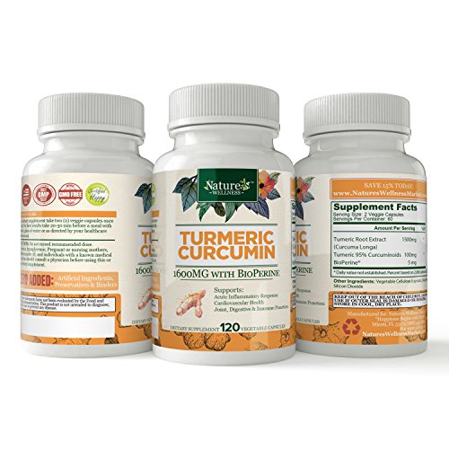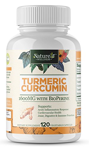 HIGHEST POTENCY AVAILABLE TURMERIC PILLS ENHANCED WITH BIOPERINE: Nature’s Wellness turmeric formula has 1600mg of Turmeric Curcumin with 95% Standardized Curcuminoids per serving (Highest Potency) and 5mg of BioPerine (black pepper, curcumin with black pepper) for enhanced absorption and increased bioavailability.