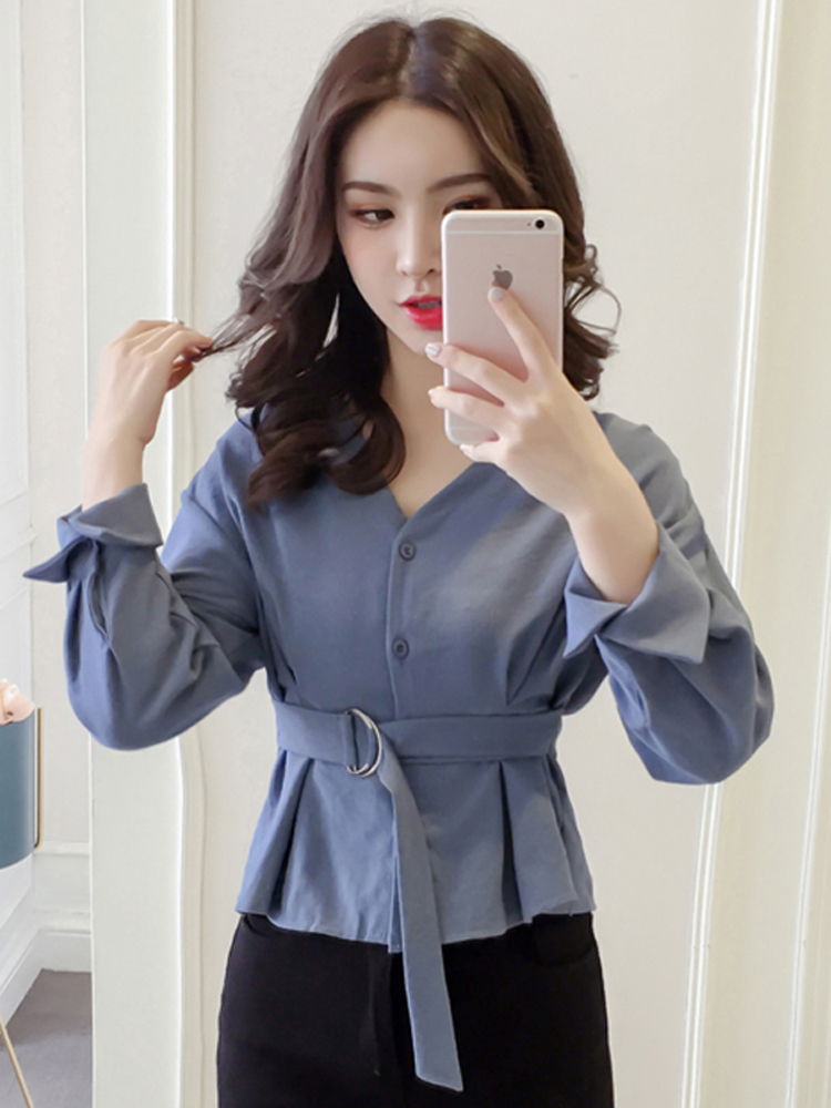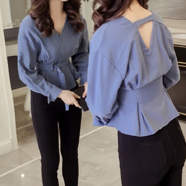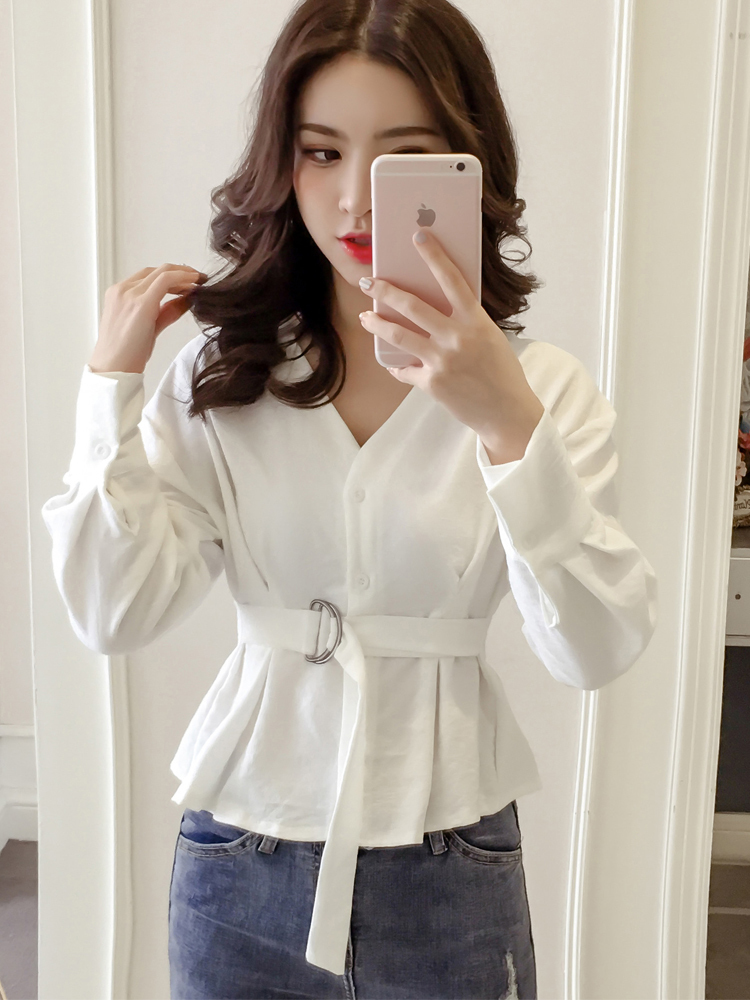 ウエストベルト付きでメリハリのあるシルエットをプラスしたきれいめトップス。