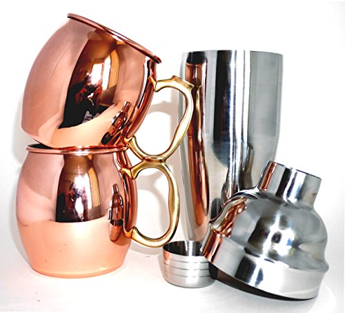 -. Feature : Mule mugs are the daintier 16oz size, 304 stainless steel/copper plated with rustic casted brass handle / Shaker is a standard 3-piece 24oz size, but is made from 304 stainless steel (beware of 201 stainless steel shakers which rust easily) / Makes a great gift set for friends, family, coworkers, birthdays, and drinking buddies / The gift set comes in a plain white box (shaker comes in its own white box for extra protection) / Can choose gift-wrapping option in cart. Gift-wrap P.R.Ices range from $3.99 to $5.99 per item, depending on size.