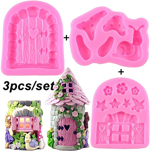 - This chocolate molds include 1 pcs snail molds, 1 pcs gnome fairy door molds,1pcs window molds,polymer clay molds have a gift bags ,color is pink.