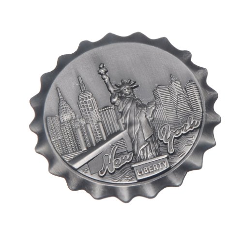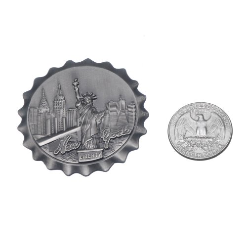 Bottle Cap Shaped New York Souvenir Metal Magnet NYC Skyline Statue of Liberty NY Empire State Building Chrysler Building Hudson River Metal Magnet