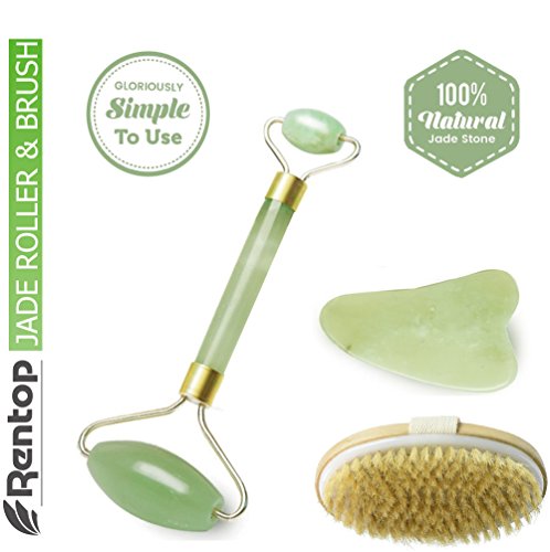 -. Feature : ✅Rentop BODY BRUSH:Our brush has shown great results for the skin's health and beauty when dry brushing; Benefits include: cellulite appearance reduction , smoother glowing skin, improves blood circulation, shed dead skin, eliminates clogged pores for better nutrients absorbing / ✅NATURAL JADE:100% real genuine jade stone with ultra smooth rolling action for best results / ✅FANTASTIC JADE ROLLER : Anti-Aging, Anti-Wrinkles line, Reduce dark under eyes, Better skin and health through natural Jade stones without any chemicals or irritants, Use with face cream can prmoted the cream absorptioned. / ✅FREE YOUR BEAUTY:Reduces your dark circles under the eyes and puffines. The larger roller is ideal for areas like the neck, chin, cheeks, and forehead, while the smaller roller is perfect for areas around the eyes, nose, and lips. / ✅100% SATISFACTION GUARANTEE: No Reason Exchange, Replacement or Refund.