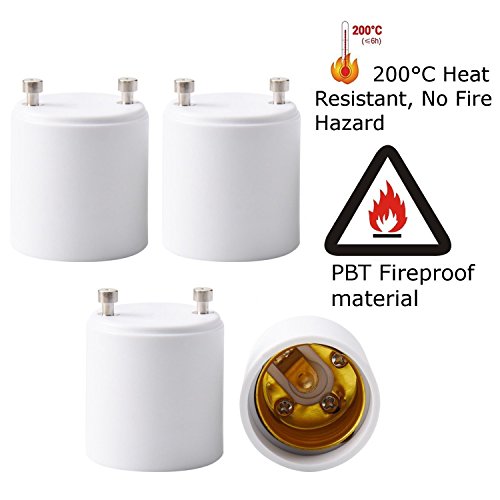 JACKYLED 4-Pack GU24 to E26 E27 Adapter Maximum Wattage 1000W Heat Resistant Up to 200℃ Fire Resistant Converts GU24 Pin Base Fixture to E26 E27 Standard Screw-in Socket