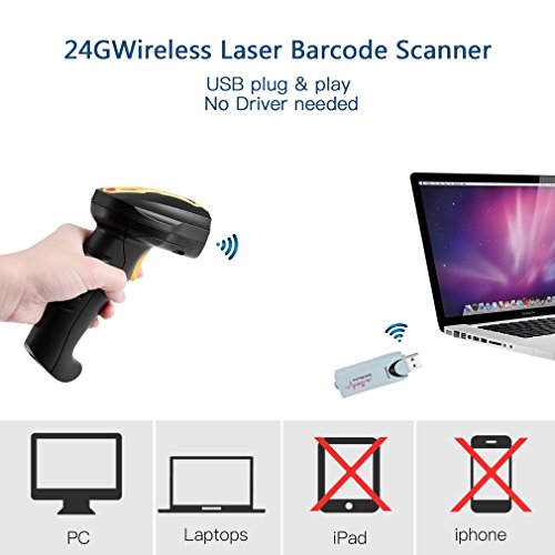 - ➤ EASY Operation & Support MULTIPLE SCANNERS: Simple one trigger to begin scanning or switch to automatic mode for quick scanning without pressing any button; Multiple Scanners can transmit data to the same wireless receiver, ideal for warehouse where several people might scan at the same time