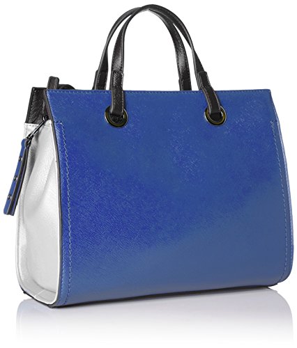 A|X Armani Exchange Medium Saffiano Shopper, Black/White/Blue