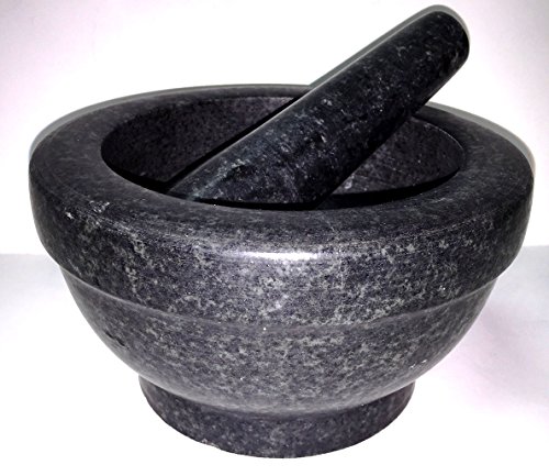 - Super strong and thick solid 100% Granite Black Stone Pestle and Mortar, 3 cup and 1.5 cup capacity