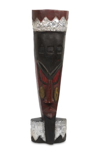 NOVICA Decorative Large Sese Wood and Brass Mask with Stand, Brown, 'Afenyo'