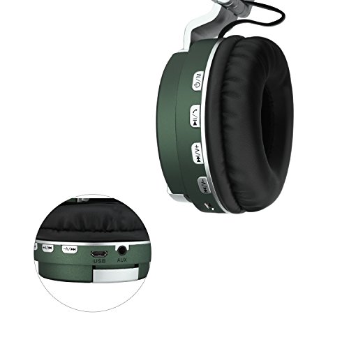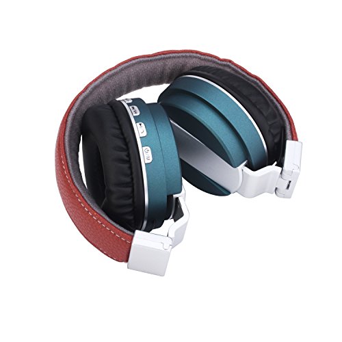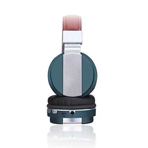 -. Feature : The advanced built-in microphone offers a clear mode of communication. And with board easy to use buttons allows Skip/Play/Pause on all your music tracks or pick up/end your call as well as most phone use. There are 4 buttons including: On/Off button(Power On); Multi-Functional Button(Dedicated to pairing/Radio); Answer/End call Button; Volume control& Music buttons(short press to adjust volume, long press to Next/Previous Track). / Comfortable and foldable design: The headphones have an special design with PU leather stretchable headband (fits any head) and comfortable ear pads. The ear pads are made of soft artificial protein material which make it comfortable to use the speakers even for longer durations and helps in isolating outside sound. Also the folds into a compact form that's saving storage and easy to carry everywhere you go. / Superior performance : The advanced CSR bluetooth 4.0 technology ensures that high quality clear music reaches your soul without any interference. The wireless design with this bluetooth speakers make listening music becomes a hassle free experience - no more tangled cables. / Built-in rechargeable lithium-polymer battery enables a remarkable playtime of up to about 6 hours (standby time about 30 hours). The rechargeable battery can be easily charged, connect the micro USB plug to micro USB port and connect USB Plug with power supply, average charge time 1.5 hours. Alse, When low on battery, the speaker can be used as wired headphone through the 1.5 m long audio cable that comes free with the headphones. / Strong compatibility :The Bluetooth headsets can be simply paired with any of your bluetooth enabled devices to enjoy high-quality music. Such as iPhone, Android, Smartphones/tablets/ Touch iPad and all Bluetooth enabled devices. And these incredible speakers support with TF card mode.