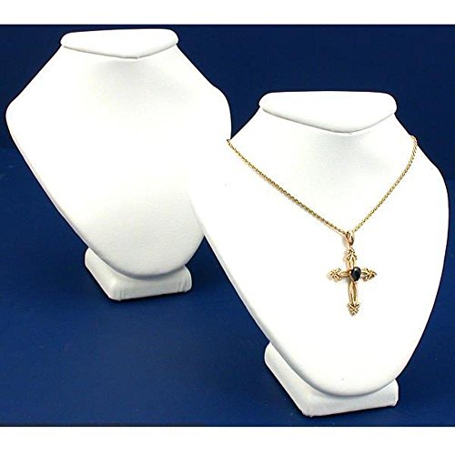 -. Feature : This is a new set of 2 white faux leather necklace bust displays / Great for displaying jewelry on countertops and showcases / Each measures approximately 4 3/8" x 2 1/2" x 4 1/4" (111.6 x 63.5 x 107.9 mm)