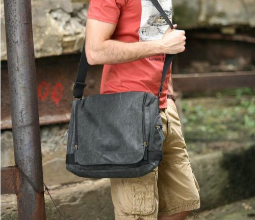 -. Title : 14.5" Washed Canvas Leisure Messenger Bag C32
