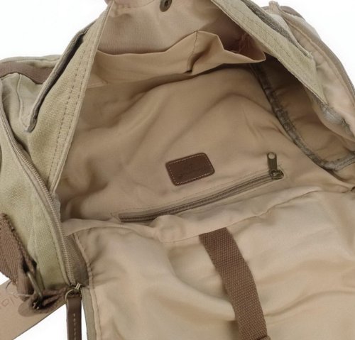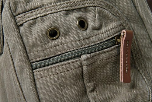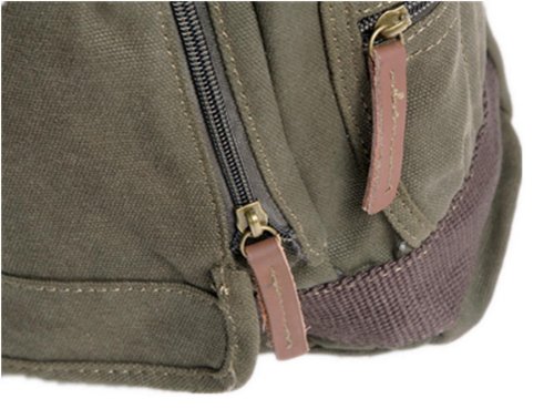 -. Feature : Dimension:14.5 * 10 * 4.5" / Flap over panel zipper closure; back flap over pocket / 2 sides zipper small secure pockets / Zipper divider and pocket; two internal phone pockets / Vintage brass fitting hardware;16oz durable thick canvas