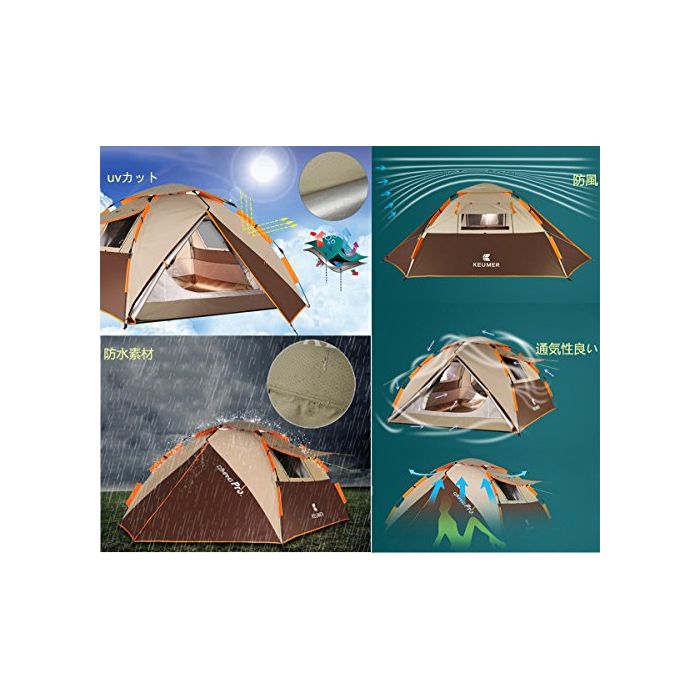 원본상품명:KEUMER ワンタッチテント アウトドア キャンプテント 3-4人用 サンシェド ビチテントUVカット 防雨高耐水性