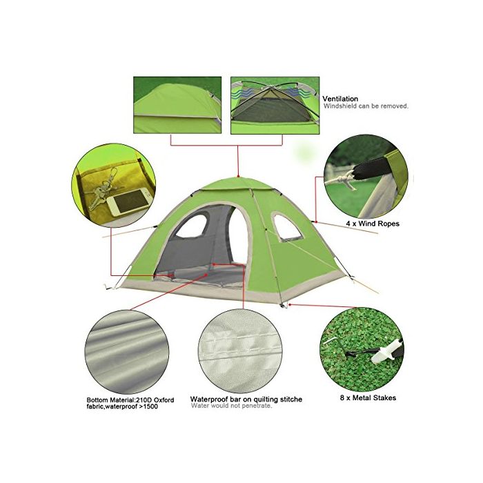 3-4명 대응 텐트】전개 사이즈는 길이210cm,폭210cm,높이130cm의 크기에서,3-4명도 텐트내에 잘 수 있습니다.중량2kg정도로,중거미 없습니다.방풍의 로프도 부속 하고 있습니다.장남편에게 만들어지고, 내구성도 있습니다.