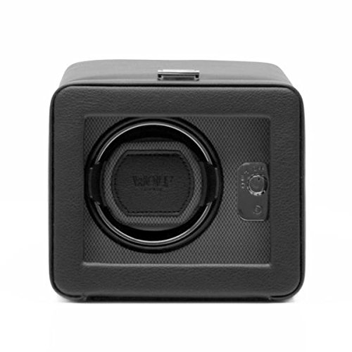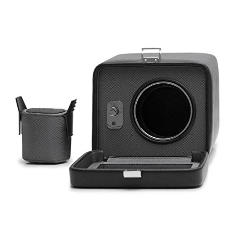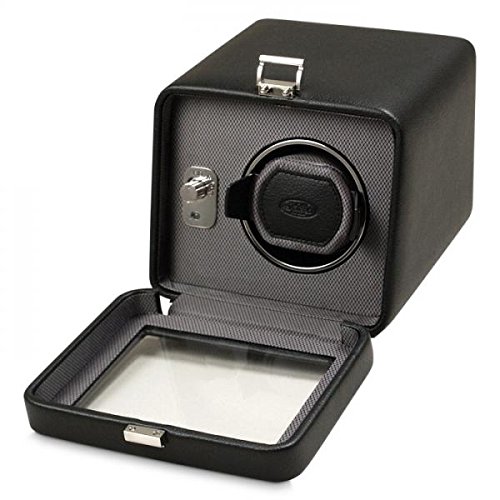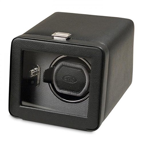 -. Title : Men's Single Watch Winder in Brown/Black Faux Leather w/ Glass Cover and Patented Winding Programs