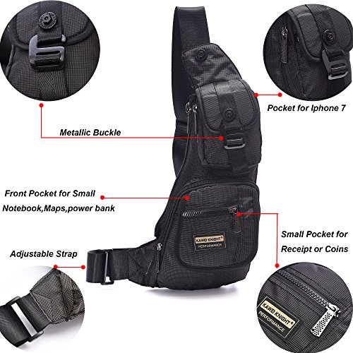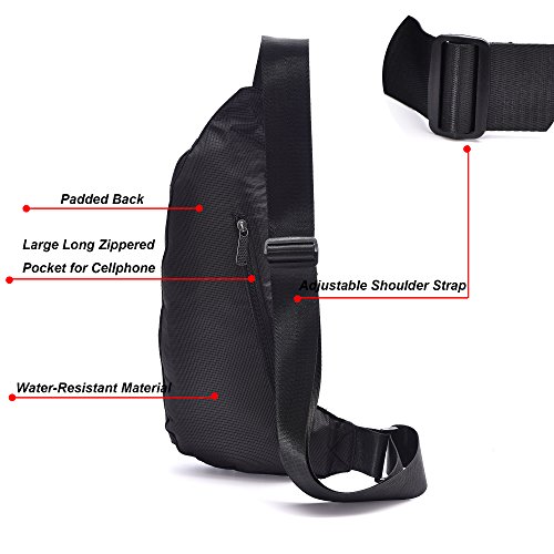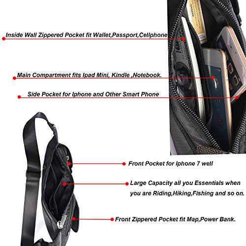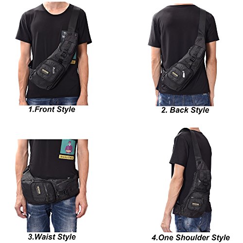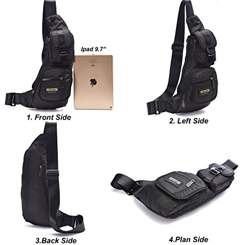 -. Feature : WATER RESISTANT AND DURABLE - The sling bag is made of vintage water resistant and durable nylon material . / BIG CAPACITY--The sling bag has few pockets ,5 pockets can contain some small articles,such as wallet ,keys ,cards, etc. The main compartment can fit iPad mini and the rear zipper anti-theft pocket can secure your belongings. / WEAR THE BAG FOR YOUR PREFERENCE-One long adjustable single strap make the bag for several styles,such as shoulder bag,chest bag,waist bag . / DIMENSION-The dimension of sling bag is 5.9*5.5*14.2 inch,suitable for regular or plus size person. / GREAT FOR-The sling bag is suitable for hiking,running,camping,gym,college, etc.