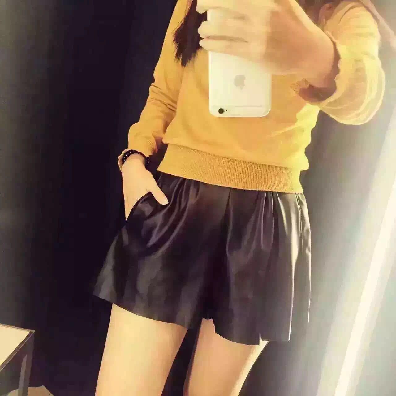李小璐同款女神sexy阔腿短皮裤强势登场[鼓掌]简洁的中高腰版型,休闲两插口袋,美美的松紧腰。穿脱方便,裤脚两侧贴心的小开叉设计,上身立马变性感[玫瑰][害羞]超短绒款,一年四季都可穿哦