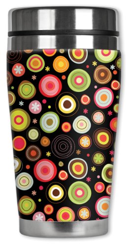 Mugzie Colored Circles Travel Mug with Insulated Wetsuit Cover, 16 oz, Black