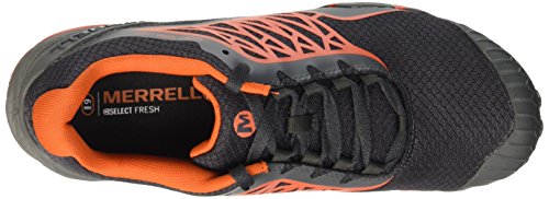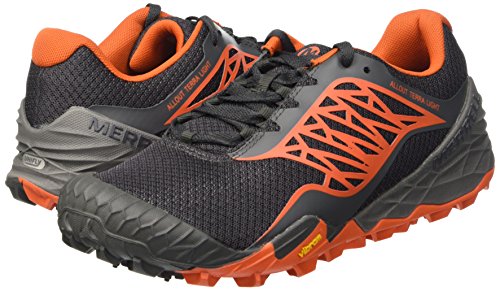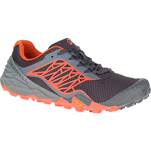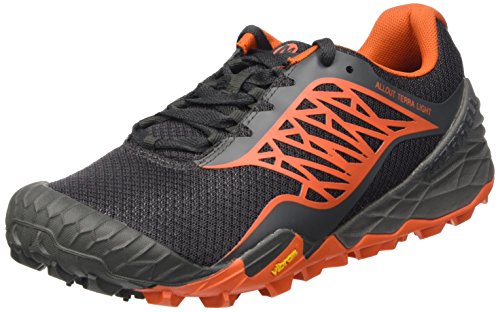 -. Binding : Apparel -. Brand : Merrell -. Department : mens -. Feature : Air Mesh/TPU upper - Offers durable, yet breathable coverage. / Synthetic Overlays - Wraps the foot for a secure fit. / Synthetic Leather lacing system - Provides a secure fit. / Bootie Construction - Acts as a partial gaiter to keep debris from getting inside the shoe and secures the heel when running through deep mud. / Toe Guard - Extends from the outsole to provide protection against rocks and debris. -. PackageQuantity : 1 -. ProductGroup : Shoes -. ProductTypeName : SHOES -. Title : Merrell All Out Terra Light Trail Running Shoes - AW16