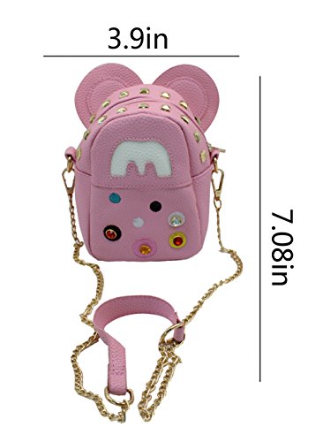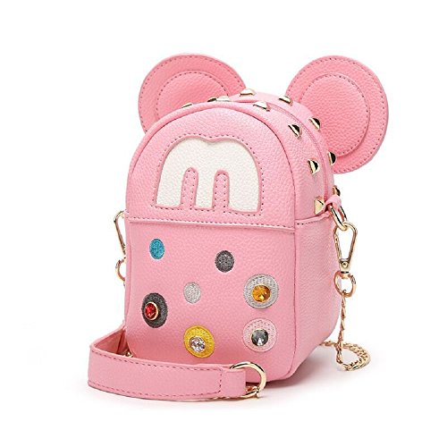 - Design:(1)Cute ear mouse shape.(2)Detachable golden chain strap.(3)Decorated With gold rivets,it shows the stylish appearance,enable it looks unique and fashionable .(4)Colorful rhinestone decor.