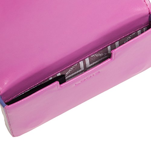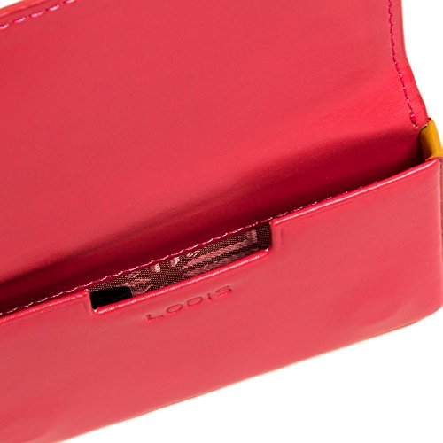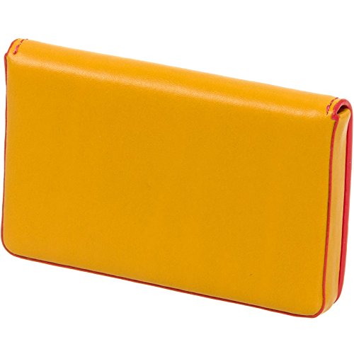 -. Feature : Leather card case with topstitching, debossed logo, and contrast edging